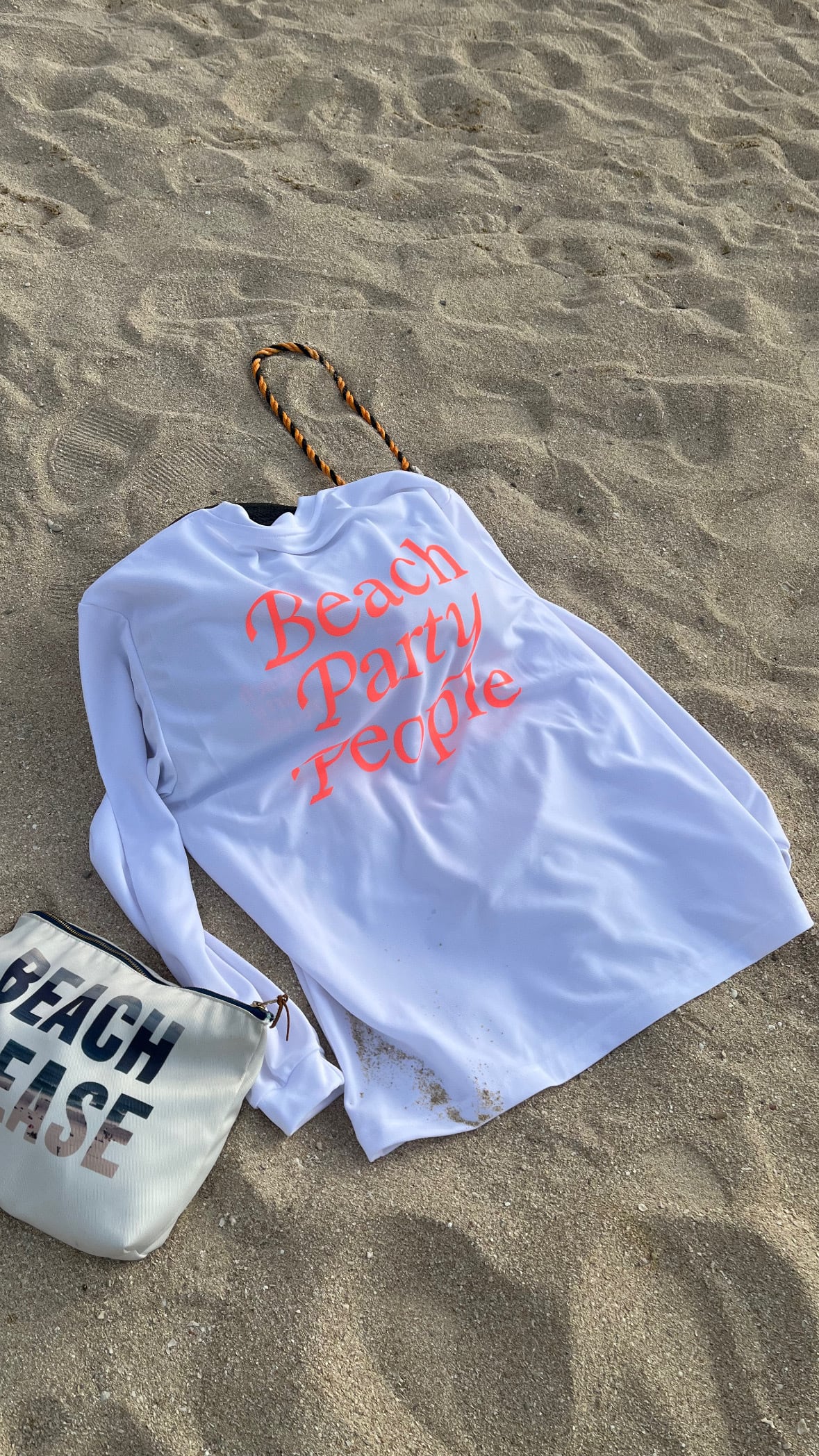 Beach Party 速乾ドライ ロンT ホワイト×オレンジピンク ユニセックス